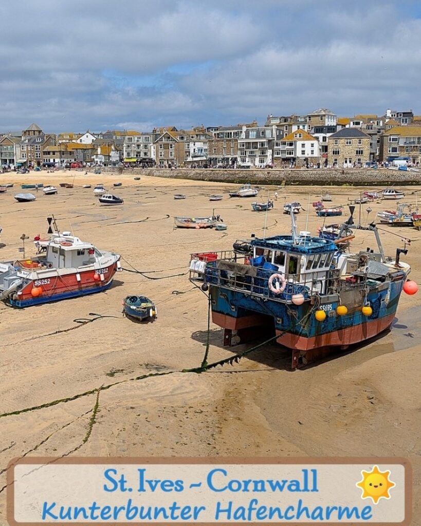 - St Ives – Cornwalls Künstlerstadt schlechthin. Enge Gassen, weiße Häuser, kleine Galerien und die Tate St Ives prägen das Bild. Die Strände direkt im Ort – etwa Porthmeor oder Porthminster Beach – gehören zu den schönsten Englands.